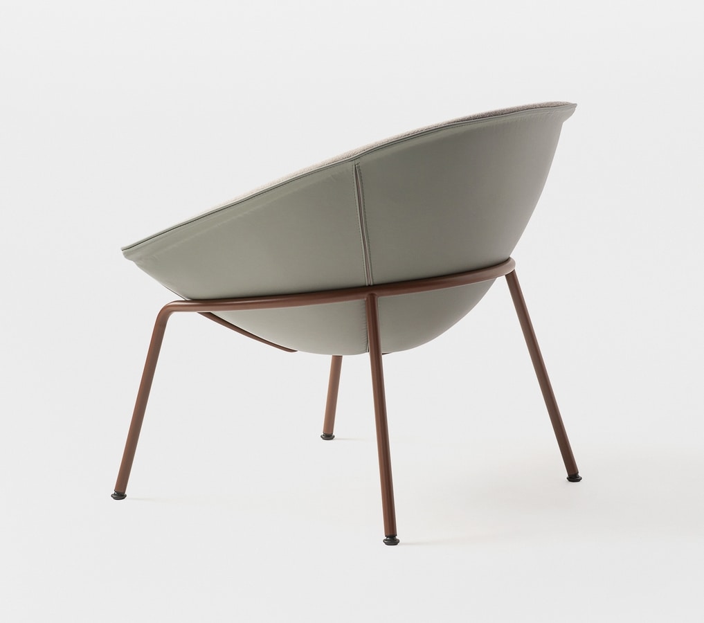 Sillón con una fuerte personalidad de espera y área de conversación disponible en:. - Ronda de la base fija de acero inoxidable Ø 580 mm;. - 4 estrellas estructura fija de acero cromado;. - 4 estrellas marco giratorio de acero cromado.