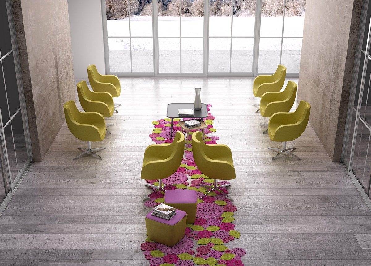 Victoria es la síntesis de diseño orgánico y privacidad acústica. Inspirada en la icónica Egg Chair, genera un "efecto cocoon" protector en recepciones y zonas lounge. Su mesa auxiliar giratoria integrada maximiza la funcionalidad para el usuario. Una pieza clave para el sector contract que busca exclusividad, confort sonoro e identidad visual.