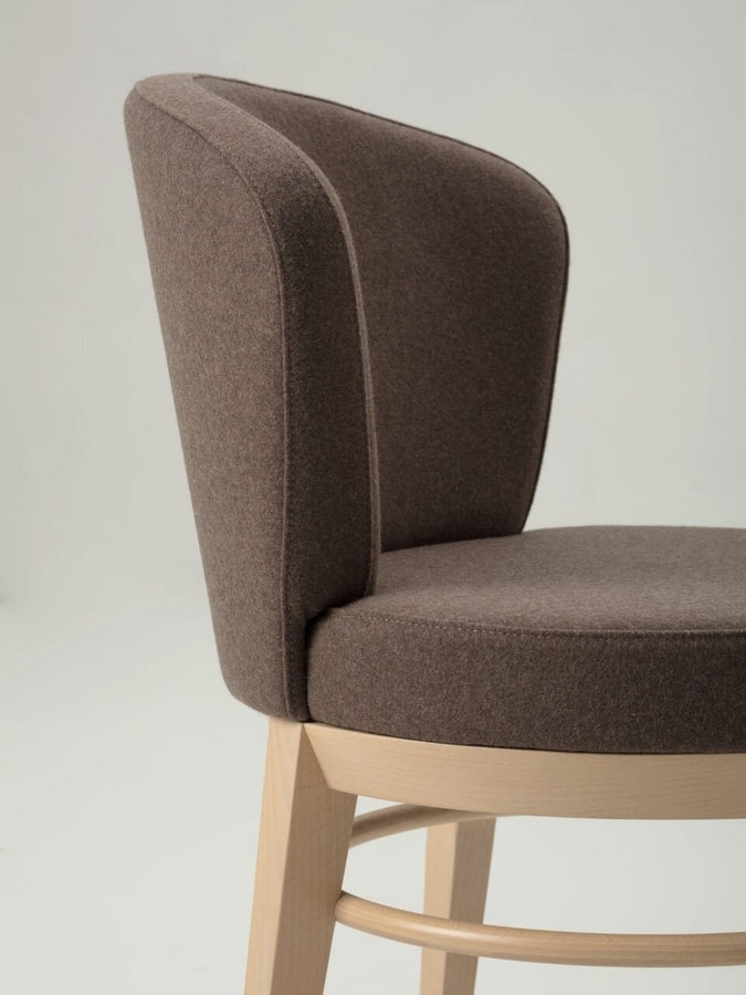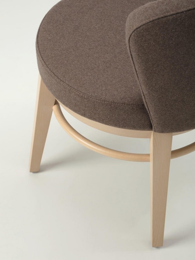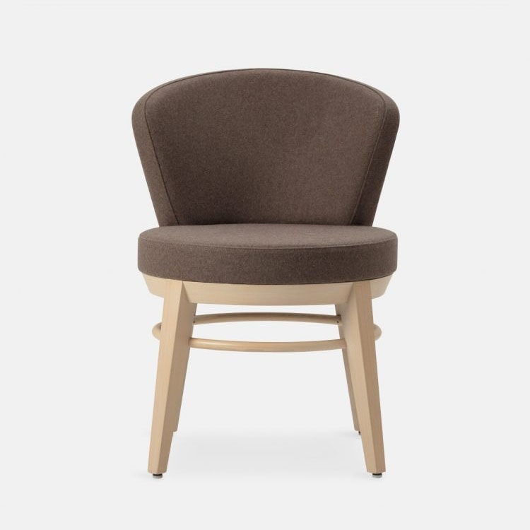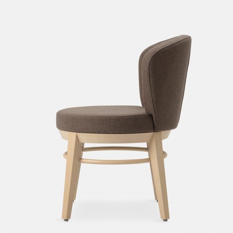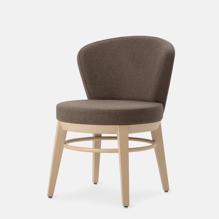 Canto tiene un marco de madera maciza de haya disponible en nuestros tintes estándar o en acabados personalizados. Asiento y respaldo en espumas ignífugas tapizados en nuestra selección de tejidos o personalizados en tejido del Cliente. La colección Canto está disponible en versión asiento giratorio 360°.