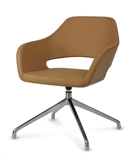 Sillas monocasco en la versión con apertura central y apoyabrazos integrados, estructuras metálicas totalmente tapizadas y cubiertas, disponibles en dos alturas.