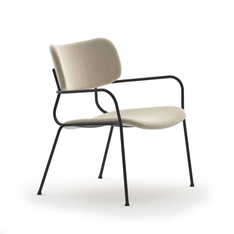 Solicitar precios Productos similaresSillón de 4 patas con estructura de acero y apoyabrazos, asiento y respaldo con espuma de poliuretano retardante de llama, tapizado.