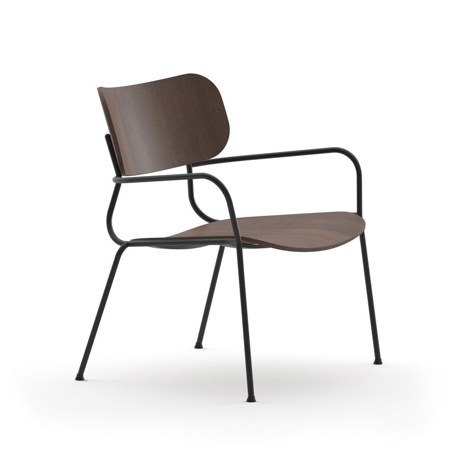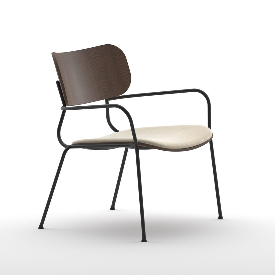 Solicitar precios Productos similaresSillón de 4 patas con estructura de acero y reposabrazos, asiento y respaldo de contrachapado de fresno. Está disponible un cojín tapizado fijo.