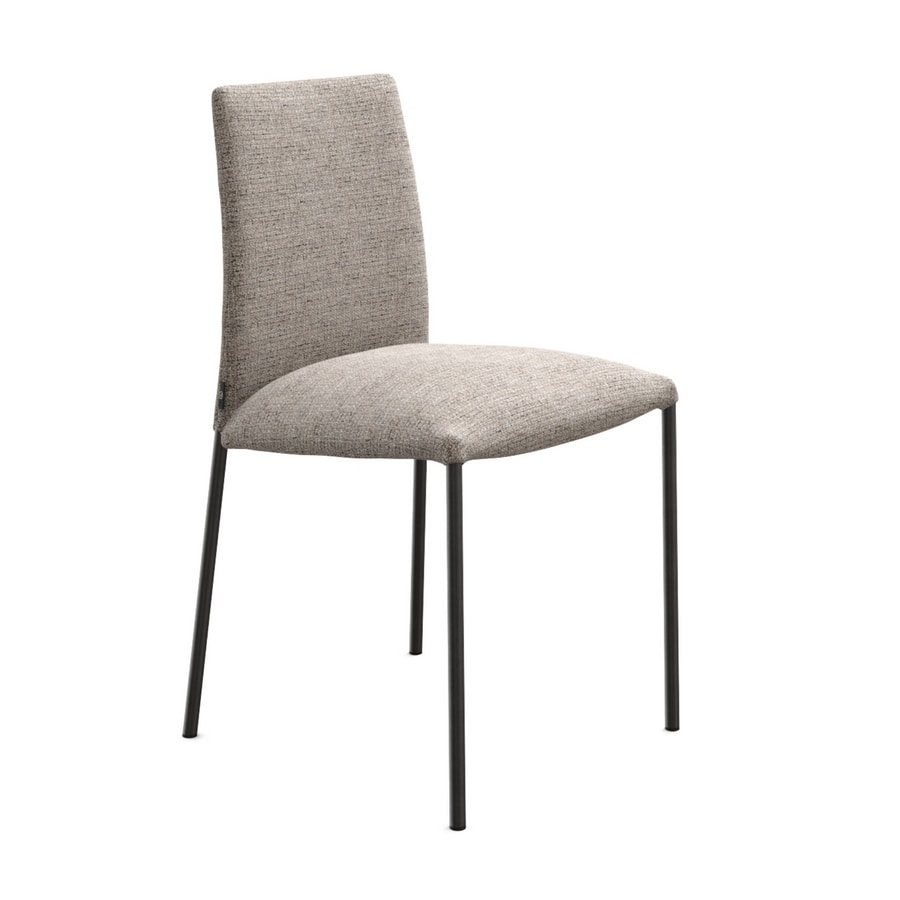 El acolchado y el respaldo ligeramente curvado hacen que la silla tapizada Baba sea muy cómoda.