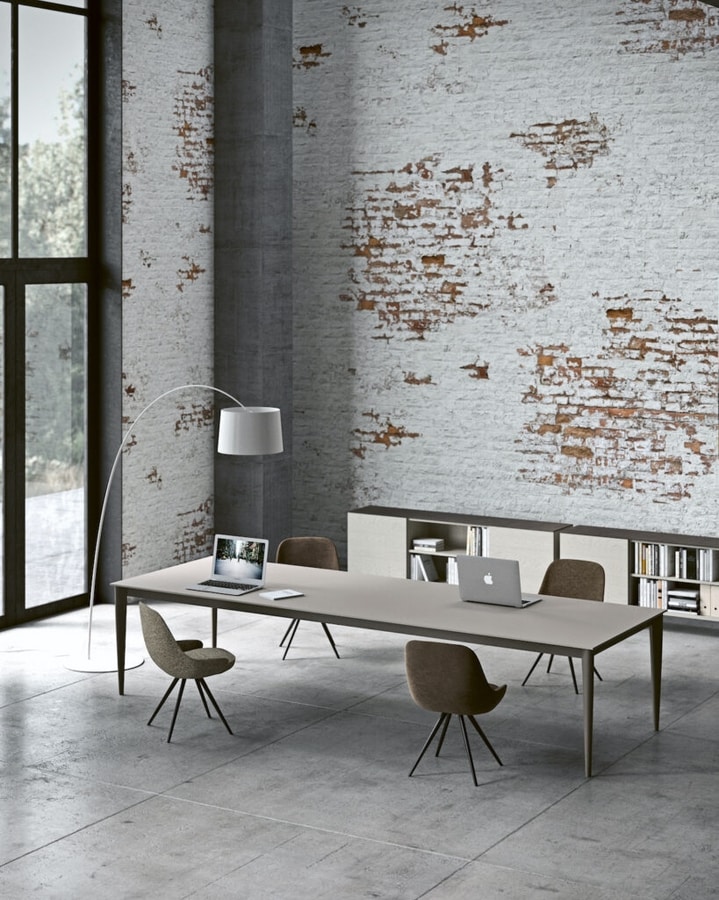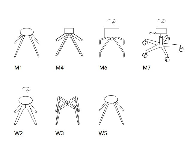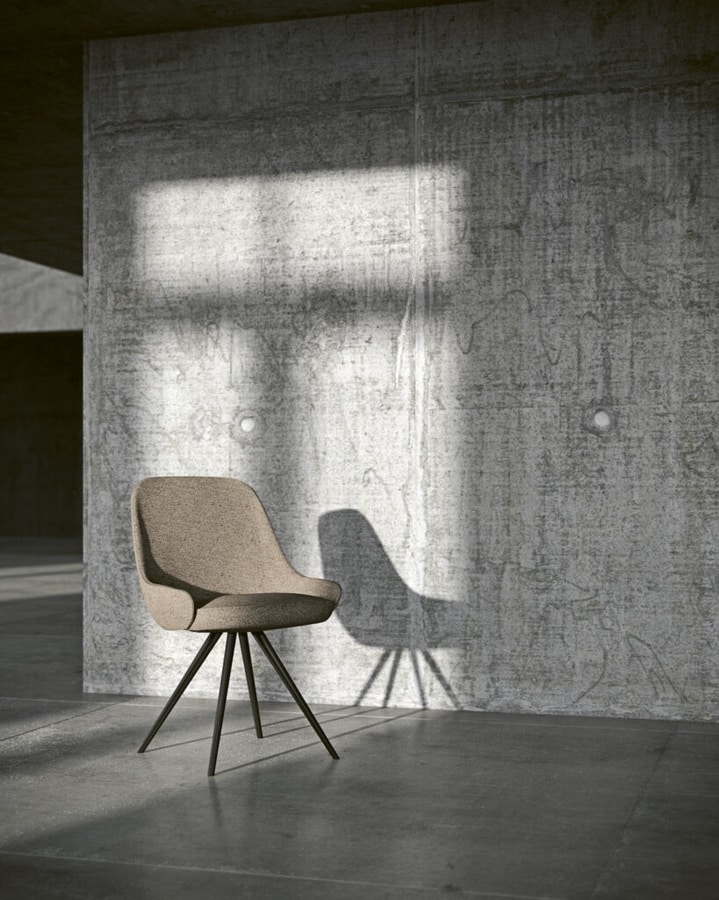 Silla con acolchado de espuma de poliuretano; Siete bajos diferentes disponibles, tres de los cuales son giratorio, en metal pintado o madera con diferentes acabados.
