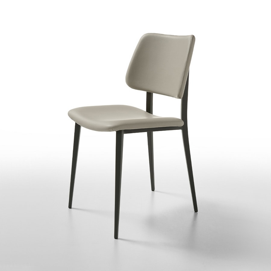 Silla con estructura de metal pintado. Asiento y respaldo tapizados en piel, piel regenerada, ecopiel o terciopelo.