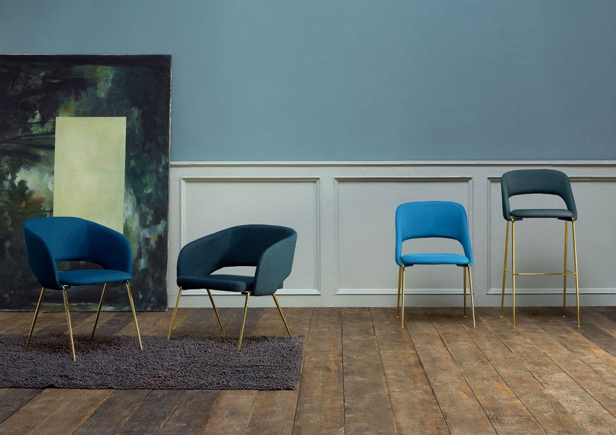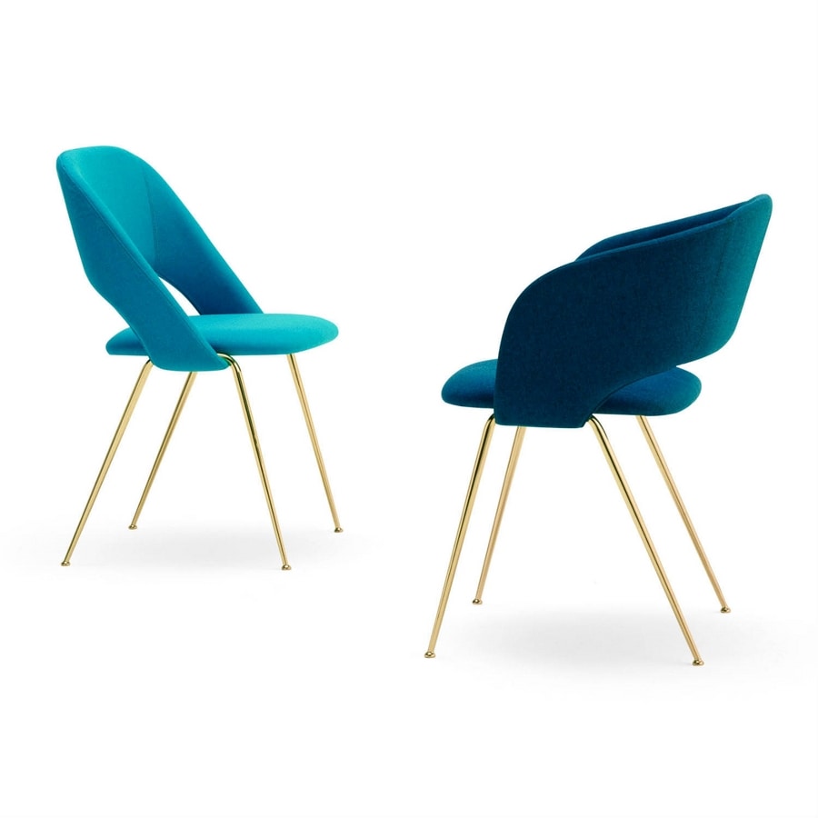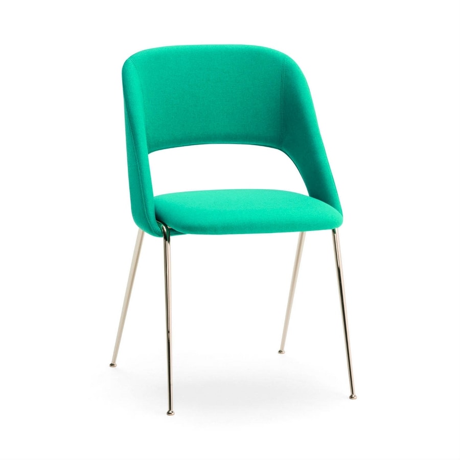 Silla con estructura de metal, asiento y respaldo tapizados en ecopiel (tela revestida) o en tela.