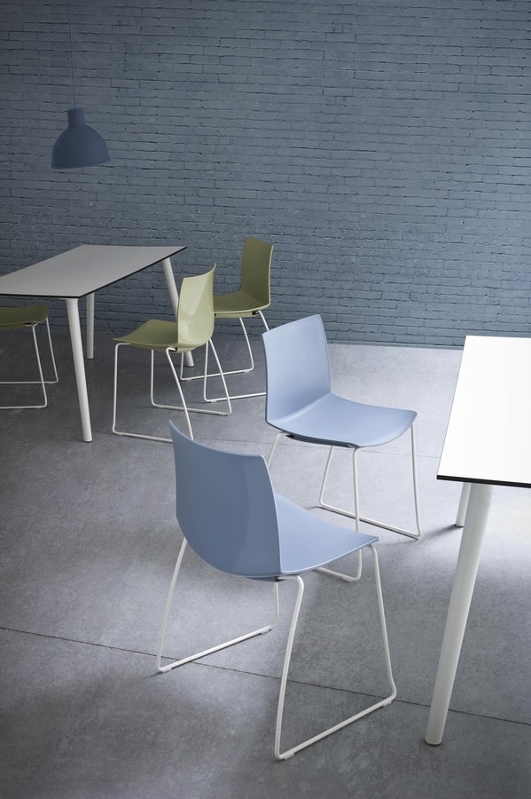 Kanvas es una colección contemporánea y ligera de sillas apilables y taburetes. La colección Kanvas comprende versiones giratorias, de patín o de cuatro patas, con armazón metálico o de madera. Tapizados frontales y completos, con innumerables combinaciones y espesores mínimos, completan la colección.