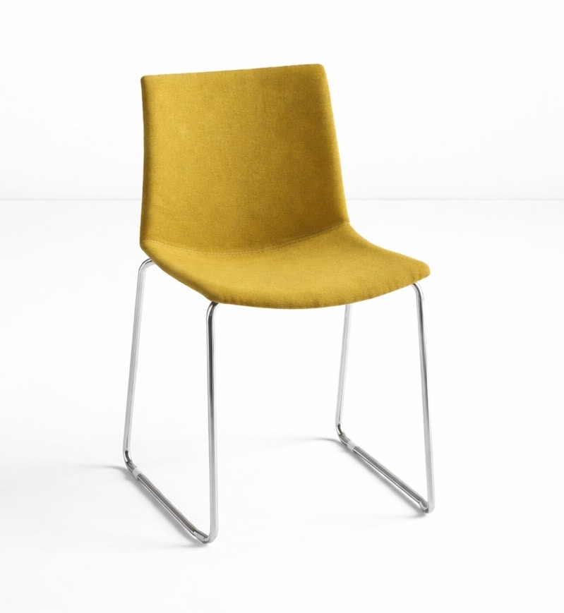 Silla tapizada con estructura patín en varilla metálica