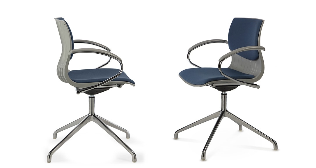 Bastidor base en metal pintado o cromado, apilable con o sin brazos de trineo y 4 patas, también con 4 ruedas, también disponible en versión taburete. Versiones de 5 radios con ruedas o pies, elevador a gas, variantes también equipadas con mecanismo oscilante Compact-Line y taburete de versiones 5 estrellas con reposapiés ajustable.