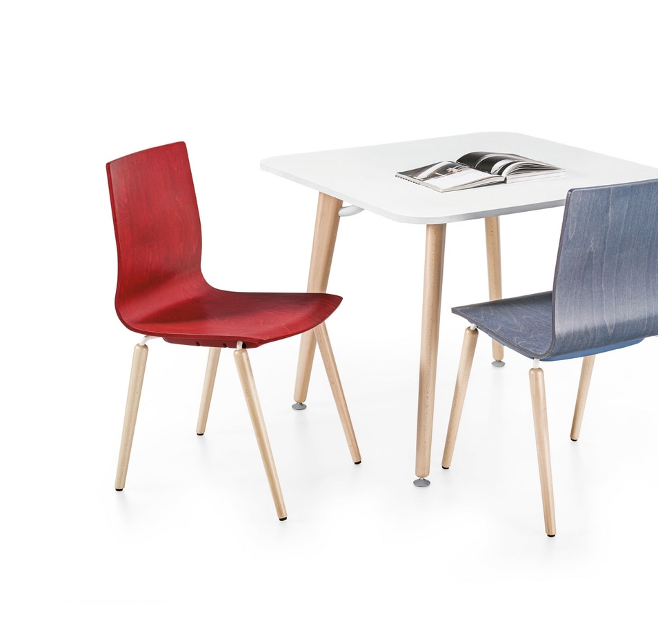 La serie Q2 se une a Q3, complementando y ampliando la gama de sillas comunitarias. La combinación de la oferta de la serie es única porque las mismas versiones de carcasa, acabados y colores se pueden utilizar en diferentes marcos. Lo que distingue a Q2 es la calidez de la madera utilizada para la carcasa que, acentuada por los colores de acabado, realza la veta de este material vivo y eterno, perfecto para ambientes naturales, «verdes».