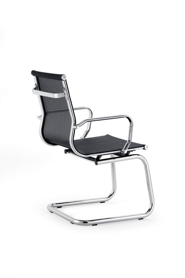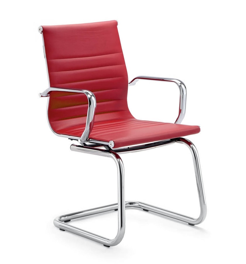 Silla de visitante para oficina ejecutiva. Base en voladizo y reposabrazos de metal. Asiento y respaldo tapizados o en puré.