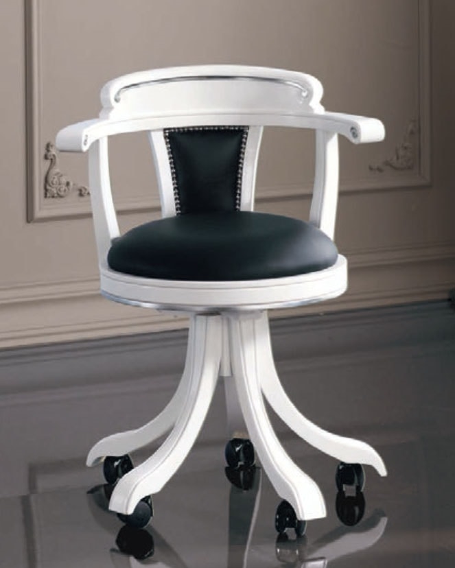 Sillón de oficina Queen Anne giratorio. Asiento acolchado redondo. Estructura de madera en acabado lacado blanco.
