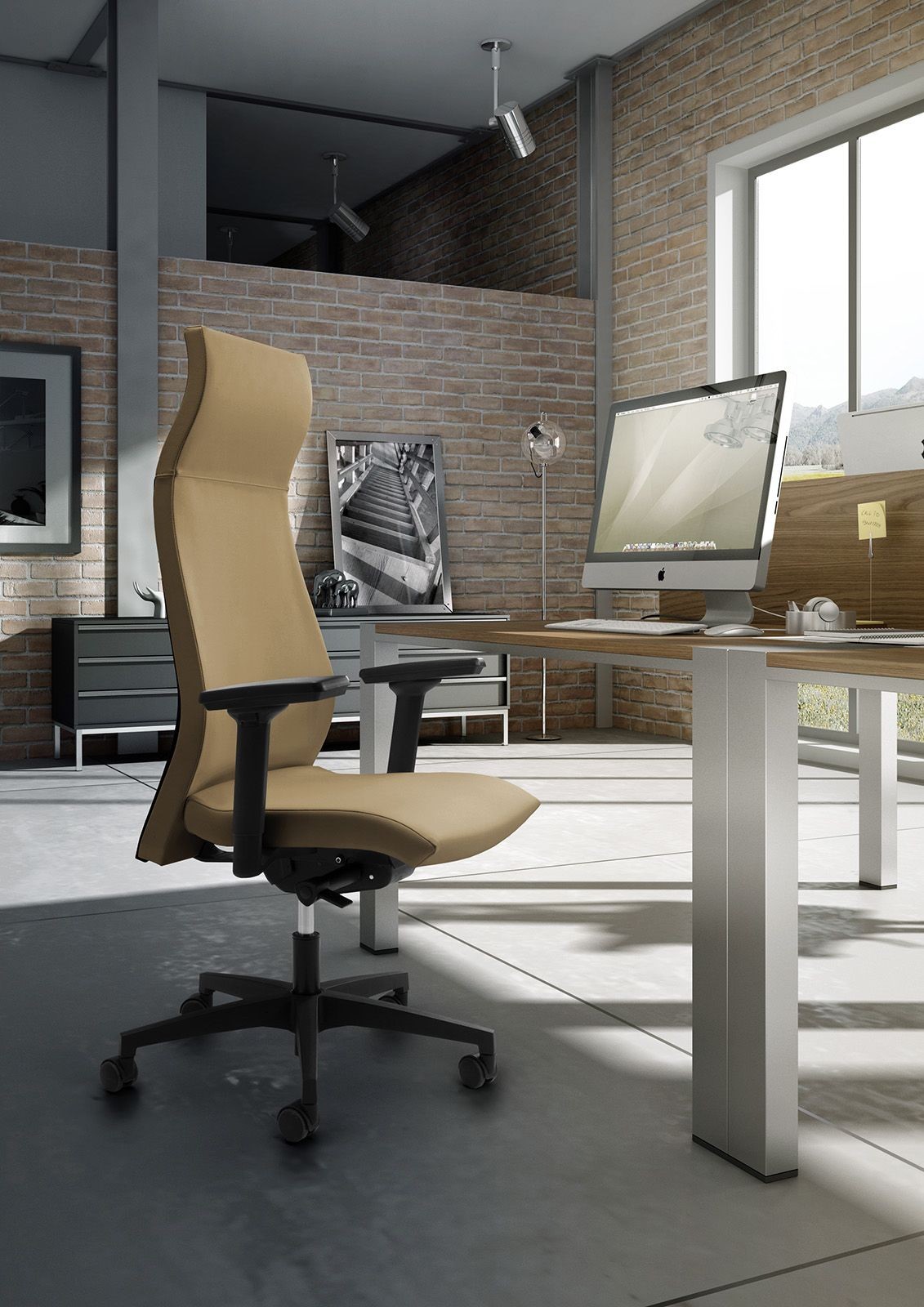 Silla de oficina con respaldo alto y reposacabezas