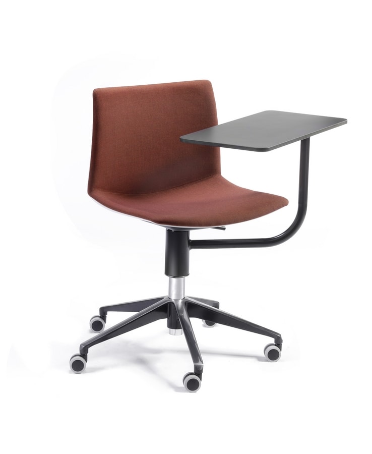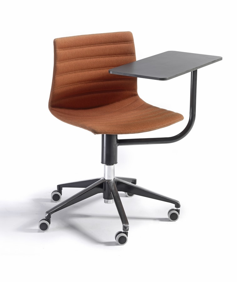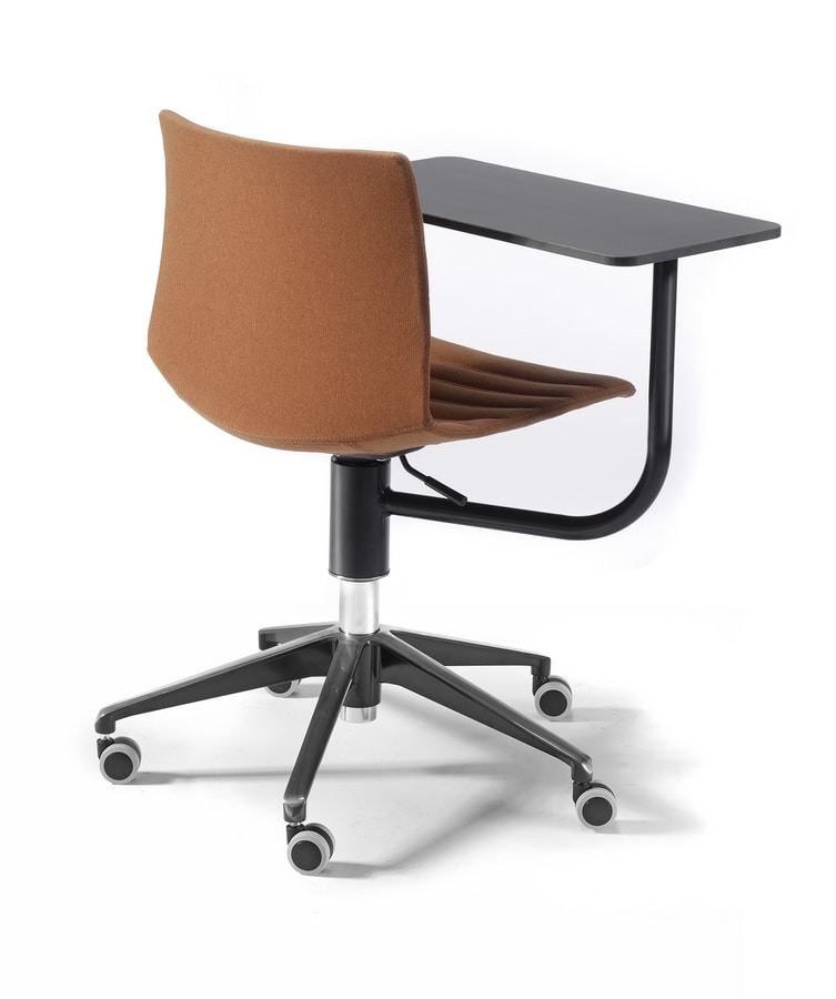 Silla de tecnopolímero con pala de escritura y base giratoria con ruedas