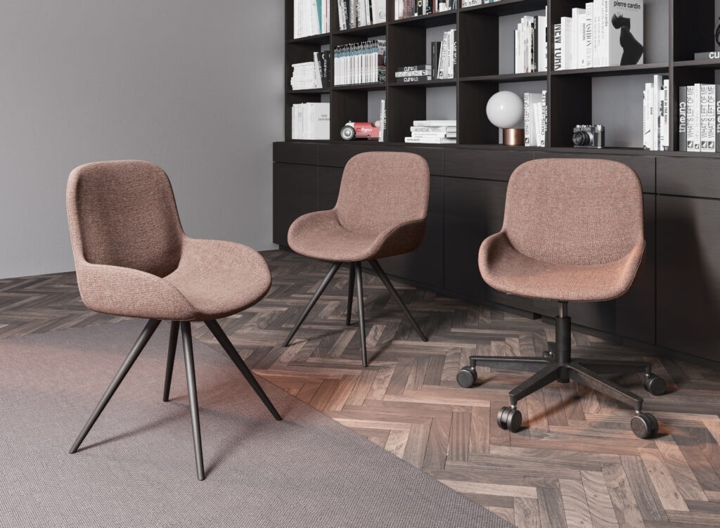 Confortable en el asiento, versátil en el uso, gracias a una gama que ve a Tiki sostenida por patas delgadas, base de madera, metal o montada sobre ruedas.