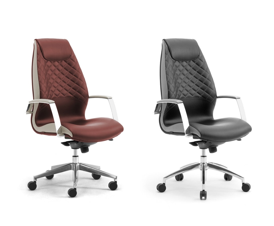 Oficina sillón con asiento de peluche y la espalda con tapicería de cuero. Fuerte pero con estilo, un nuevo enfoque de la oficina ejecutiva. El nivel de confort se dirige a la parte más alta de modo que se ajusta fácilmente a un entorno clásico y moderno. 160 mm fuera del centro mecanismo de inclinación de las cerraduras en 6 posiciones. Anti-shock respaldo. Control de tensión ajustable.