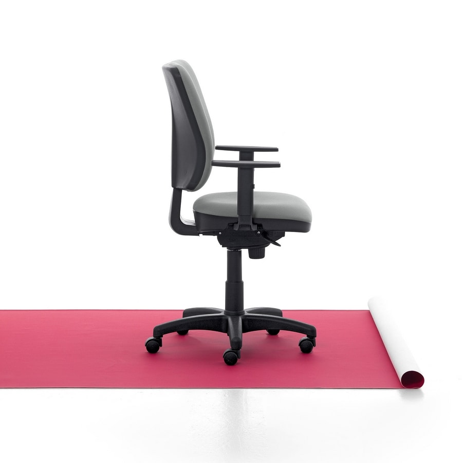 Un asiento funcional, con respaldo cuadrado, funcional y cómodo. Disponible con o sin reposabrazos, de altura fija o ajustable, con mecanismo de bloqueo múltiple sincronizado o contacto permanente y elevación neumática.
