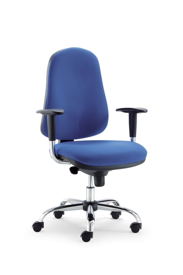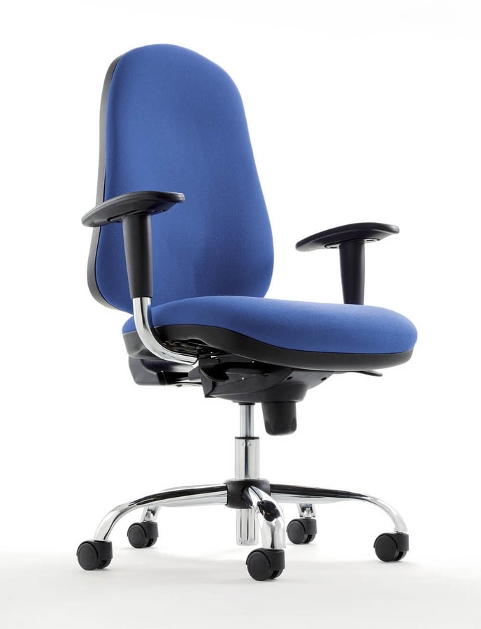 Silla operativa. Base de nylon o acero cromado, con ruedas. Mecanismo de inclinación. Opciones de tapicería. Disponible con o sin brazos.