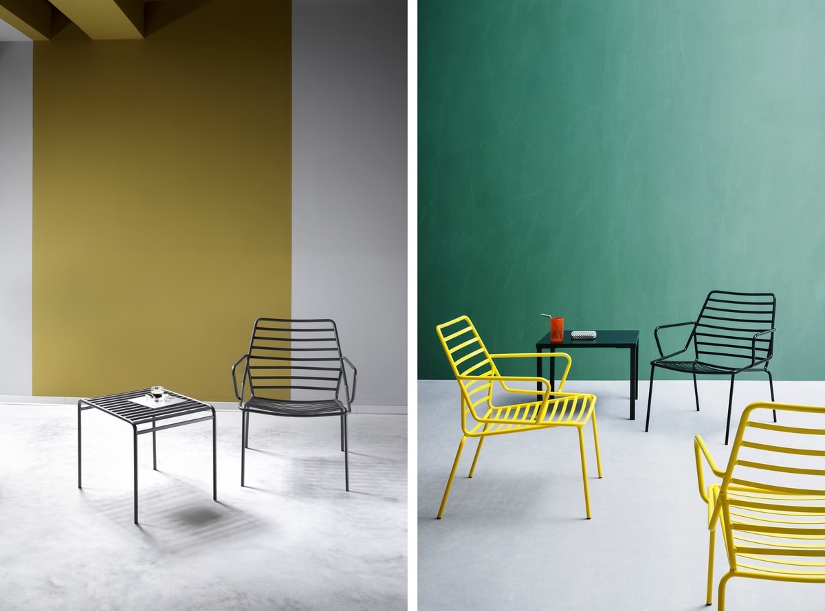 Link Lounge y Chaise Longue son síntesis de comodidad, estética, simplicidad y elegancia. Las intersecciones de la estructura en acero sólido son un elemento distintivo. Adecuadas para interiores y exteriores, el sillón y la tumbona son apilables para una mayor practicidad y disponibles en diferentes colores de moda.
