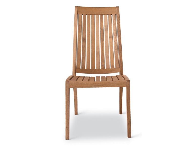 Silla en madera. Silla para el exterior y jardín. La silla y el sillón Wave tiene un diseño inconfundible y particular donde el radio de curvatura de luz contrasta con la dura de la pierna de atrás del asiento. Hay dos versiones del modelo WAVE: todo madera maciza de acacia falsa y madera con textilene. El modelo Wave con textilene tiene encanto y comodidad gracias a la combinación de la madera y el plástico.