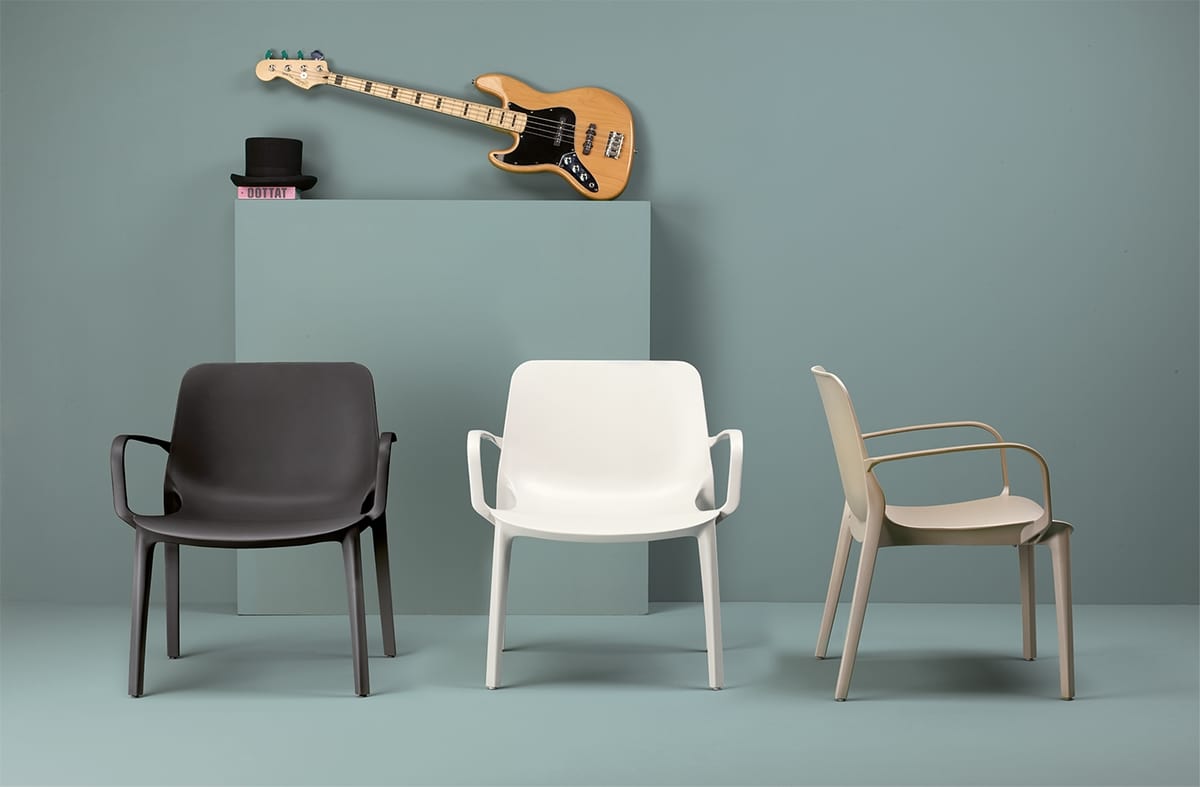 Chaise longue de tecnopolímero con refuerzo de fibra de vidrio. Para uso en interiores y exteriores, apilable. Colores disponibles antracita gris lino.