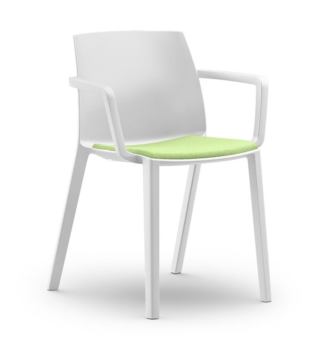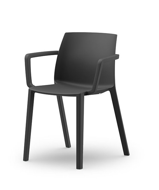 Silla apilable para interior / exterior con estructura de polipropileno 100% reciclado disponible en color gris claro, antracita o azul.