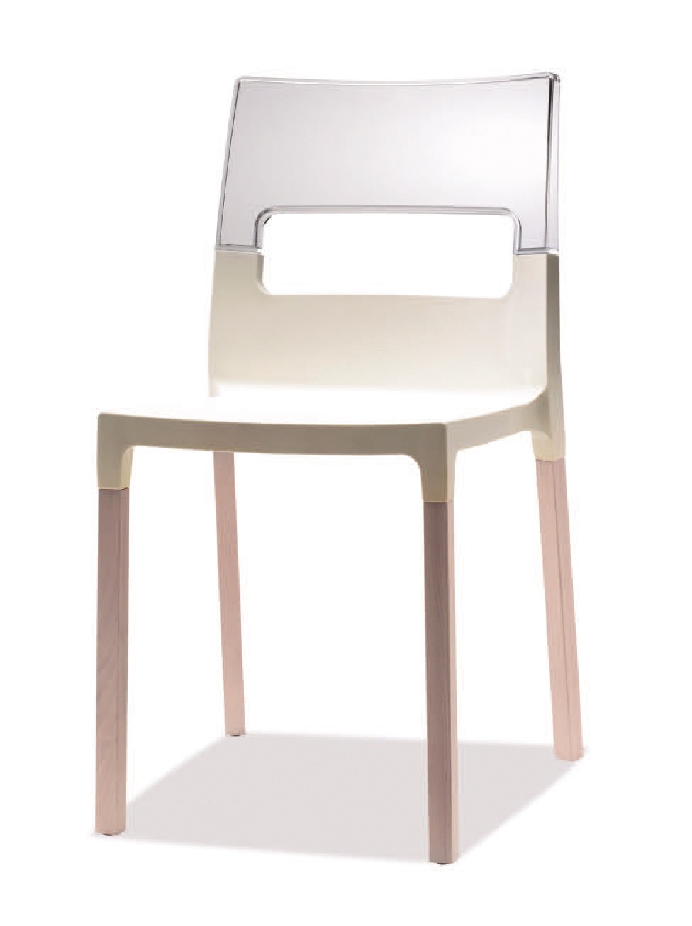 Silla en madera de haya y tecnopolímero, apilable y cómodo