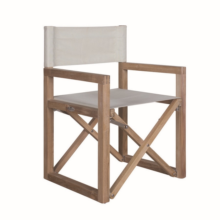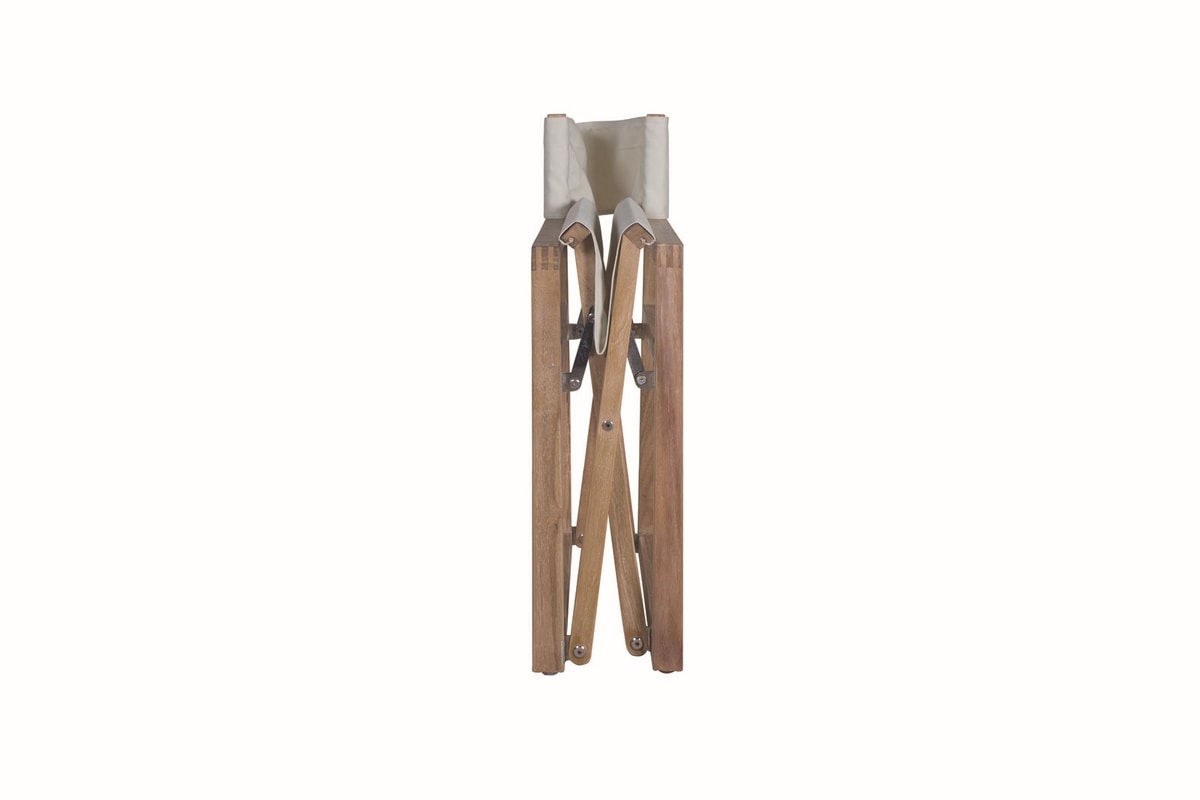 La silla de director plegable Venezia es un gran clásico: la colección incluye diferentes variaciones del mismo diseño básico. Incluso si es ligera y fácil de mover, la estructura de madera de teca garantiza estabilidad y firmeza. La tela está disponible en diferentes colores.