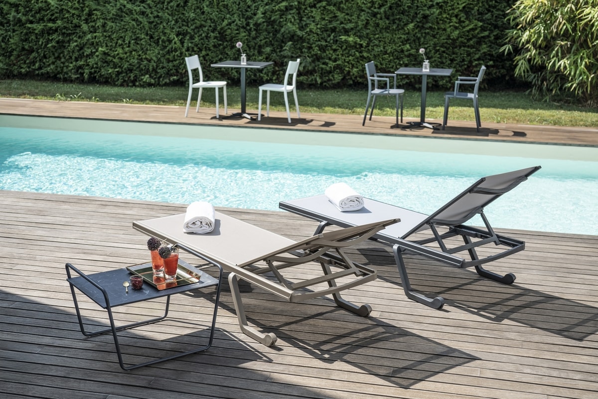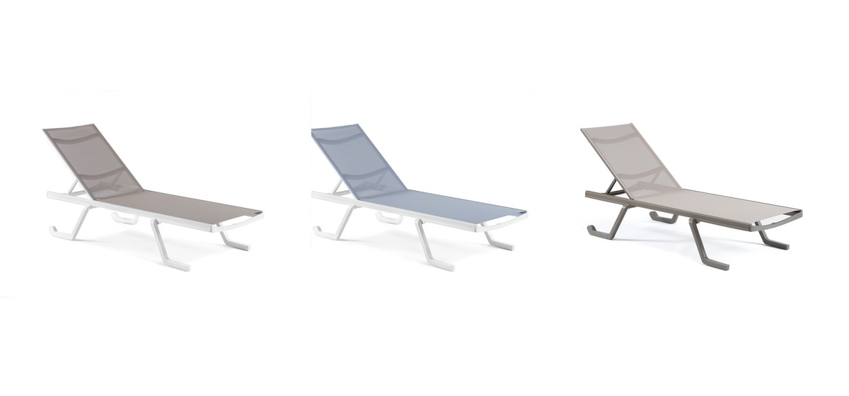 Solicitar precios Productos similaresLas colecciones de tumbonas Doge y Podio nacen de la necesidad de realzar los ambientes exteriores con un diseńo innovador, contemporáneo y sencillo. El resultado obtenido es impresionante: la superficie dedicada al relax resulta limpia y flotante, suspendida en el aire, minimizando los volúmenes. Acero, aluminio y tecno-polímero, utilizados en un correcto equilibrio gracias a la tecnología más avanzada, han creado productos de extrema ligereza y manejabilidad, además de ser supremamente resistentes y duraderos. Estas tumbonas están equipadas con respaldos ajustables en 5 posiciones y prácticas ruedas para facilitar su transporte; Doge y Podio también se apilan de forma compacta, lo que facilita su transporte y reduce el espacio de almacenamiento necesario. La cama solar Doge utiliza tecno-polímero de alta resistencia en la superficie de relajación que puede soportar un uso intensivo. La mezcla de polímeros garantiza una gran flexibilidad de la superficie, que, adaptándose ergonómicamente a las formas del cuerpo, permanece confortable incluso sin cojines, además de asegurar la transpirabilidad y permitir la salida de la humedad y el agua, evitando los depósitos estancados. El material utilizado es antidesgarro, resistente a la sal, a los rayos UV, a los agentes atmosféricos y al cloro de las piscinas.
