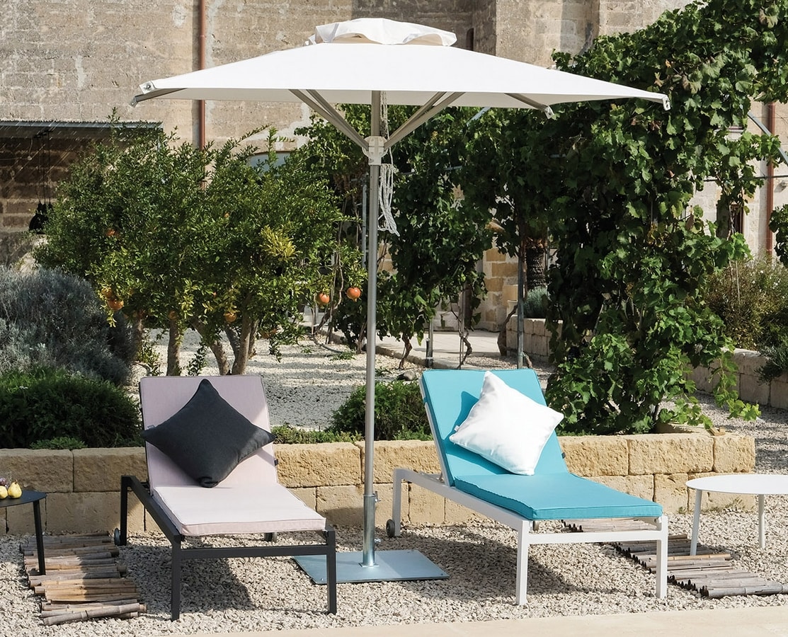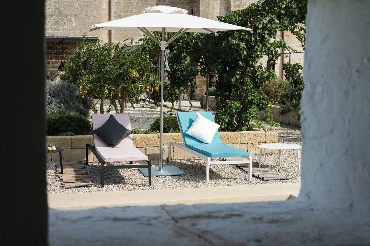 Una tumbona donde el rigor se encuentra con la ligereza. Las líneas esenciales y el diseño limpio son las características que dan un refinado sentido de elegancia a estos muebles cosmopolitas, diseñados para ofrecer un gran confort al aire libre.