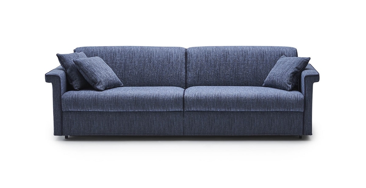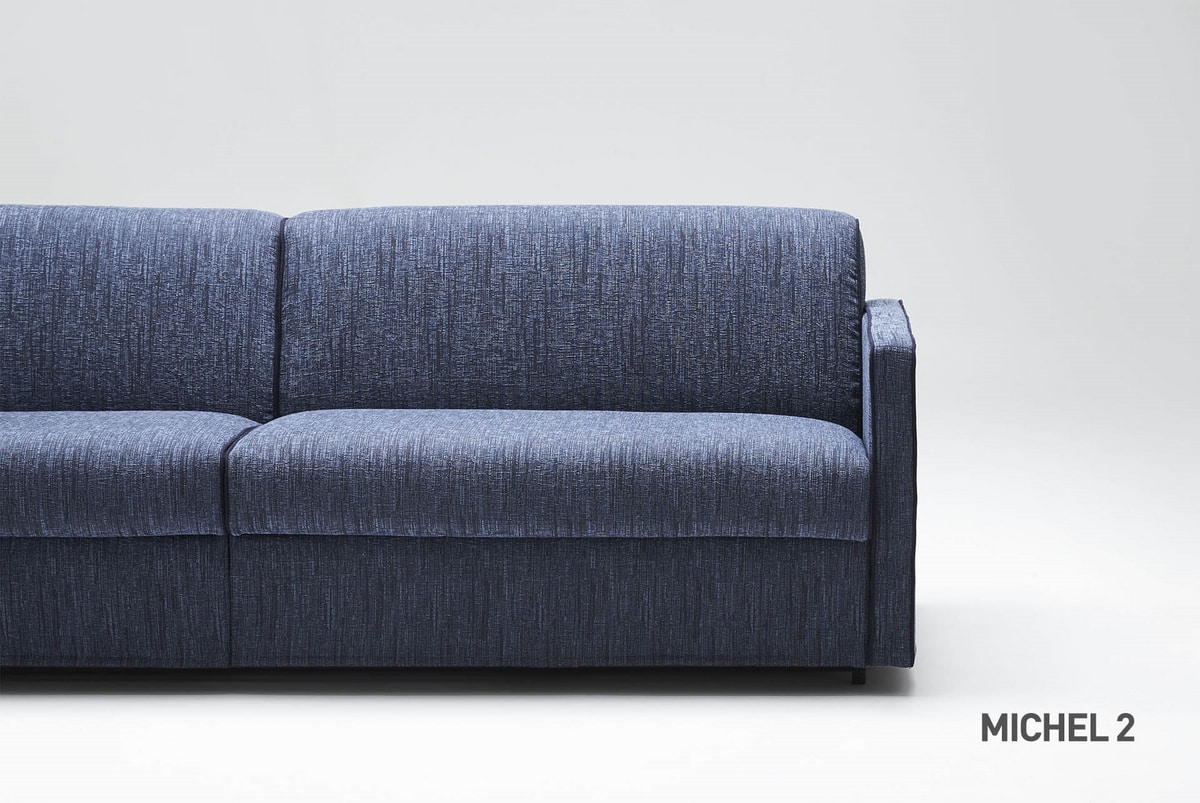 Con sus líneas atemporales MICHEL cumple con todas las exigencias de diseño. Con una simple rotación del respaldo y sin mover ningún cojín, MICHEL se muda en una cama doble transversal. La funda es completamente desenfundable y lavable, según la tela elegida. MICHEL está disponible también en versión fija y es completamente desmontable para un transporte fácil.