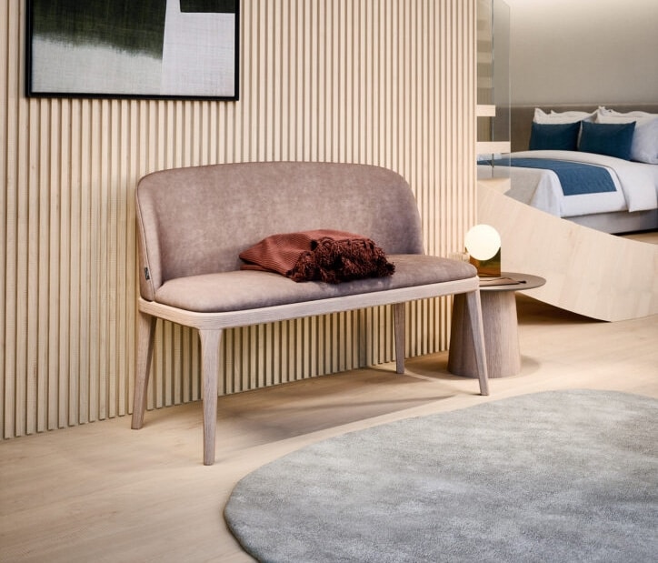Solicitar precios Productos similaresSofá caracterizados por una estructura en roble o nogal. El asiento se puede combinar con diferentes fundas de tela, cuero y cuero ecológico (también con bordes contrastantes). Patas caracterizadas por una faceta.