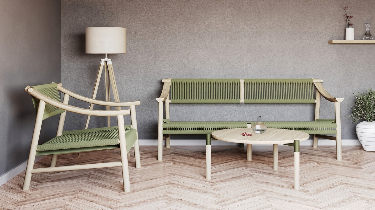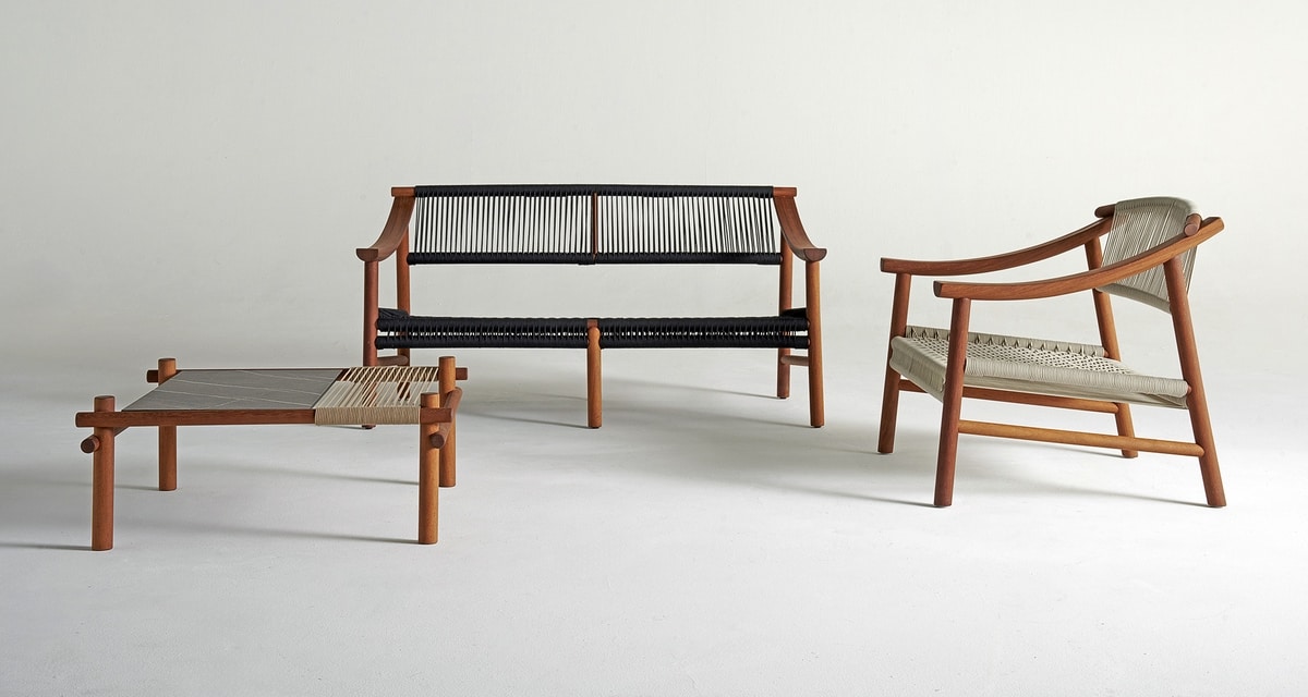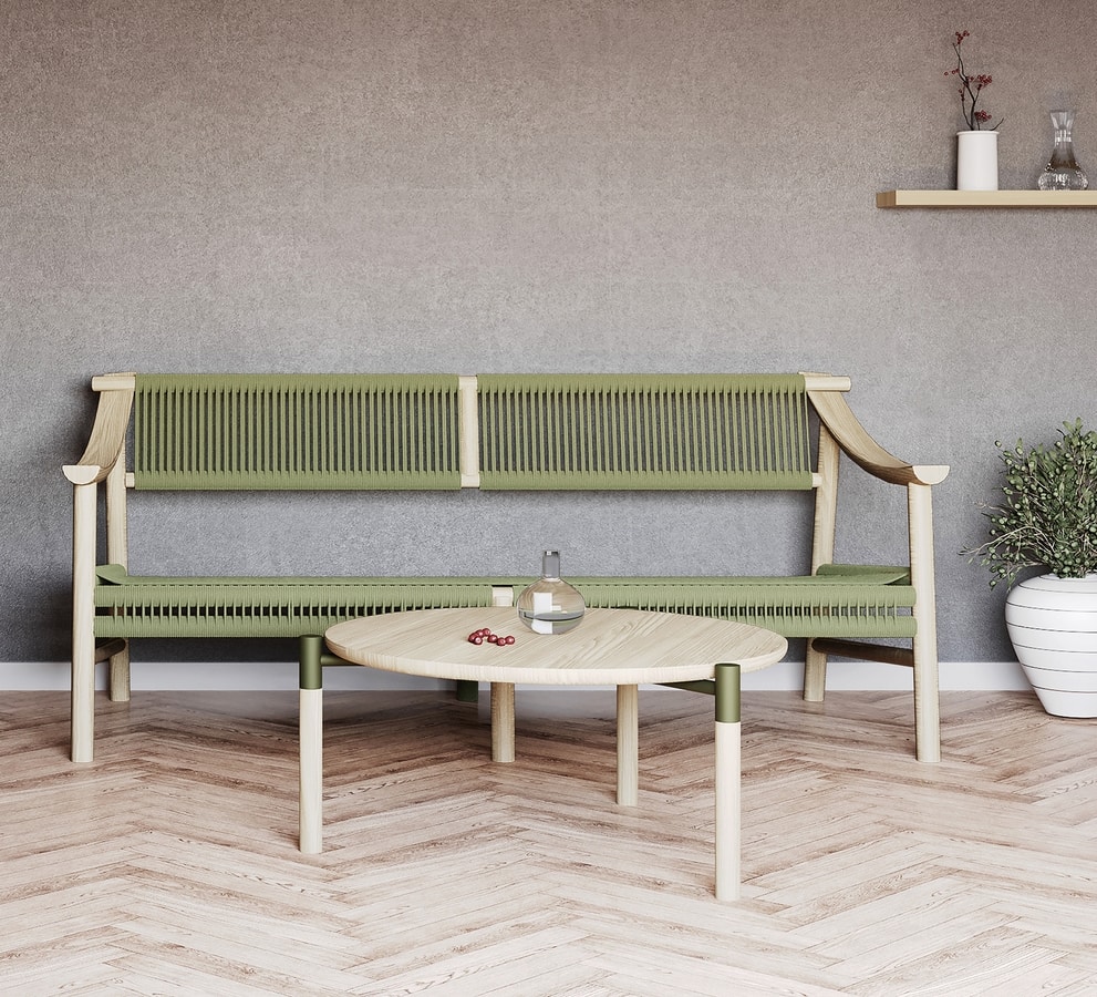 Sofá de madera, con cuerda náutica.
