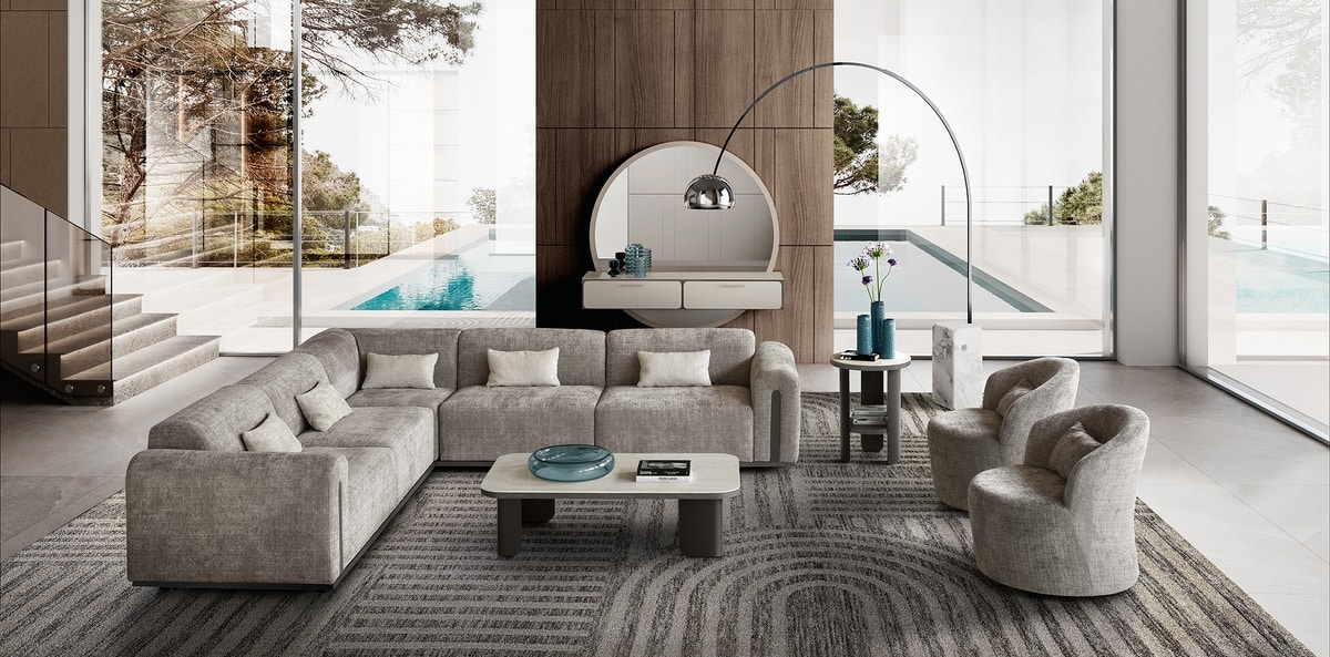 Sofá modular, con formas suaves.