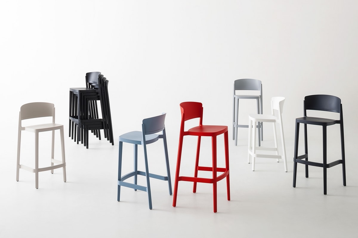 Taburete apilable de tecnopolímero, disponible en dos alturas