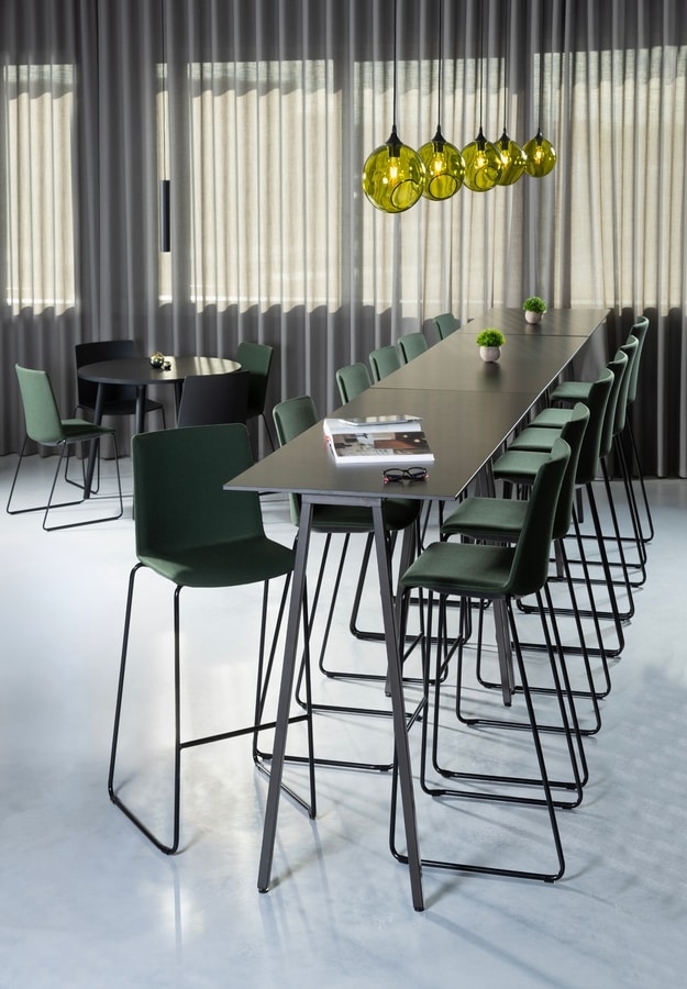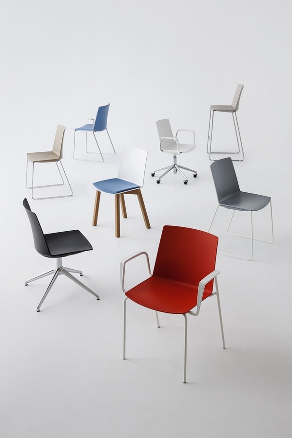 Taburete apilable de tecnopolímero o tapizado, disponible en dos alturas