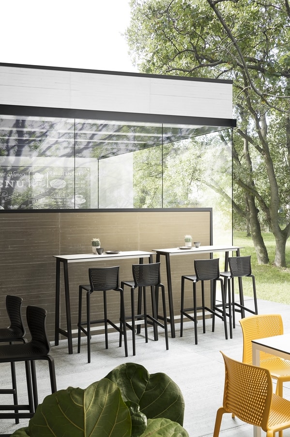 Realizados en tecnopolímero de alta resistencia, los taburetes Spyker son perfectos para interiores y exteriores. Confortables gracias al respaldo ergonómico, ligeros y apilables, están disponibles en muchos colores, ideales para instalaciones de gran tamańo.