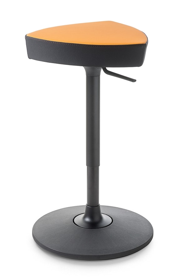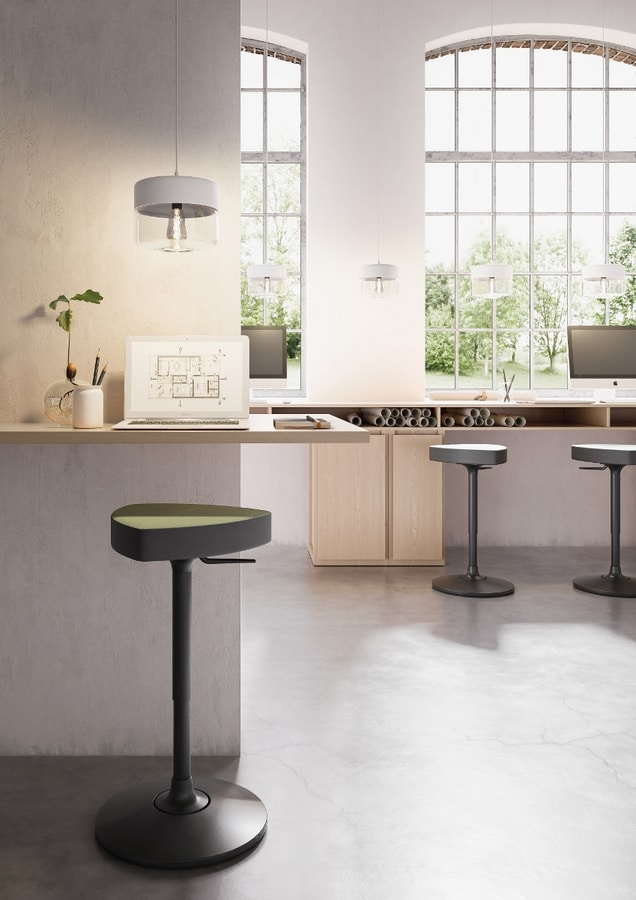 Taburete para ambientes de trabajo con base redonda pivotante negra Ø40 cm con pistón de gas. Version tapizada monocolor y bicolor.