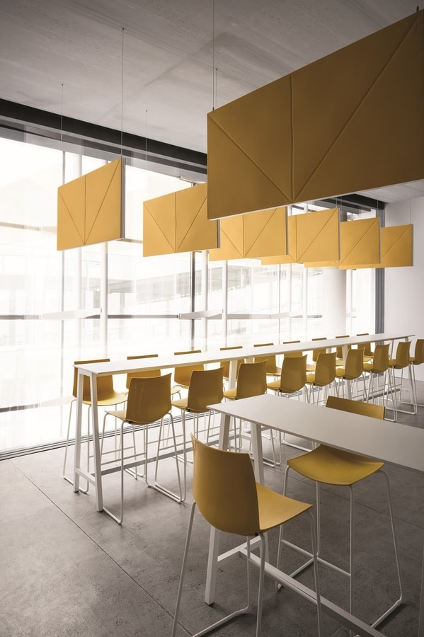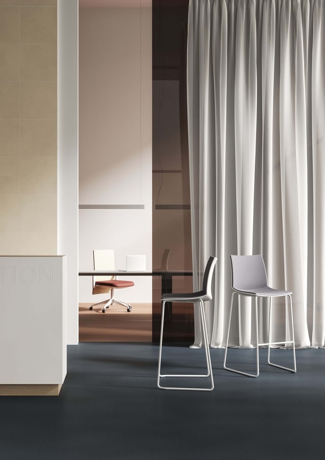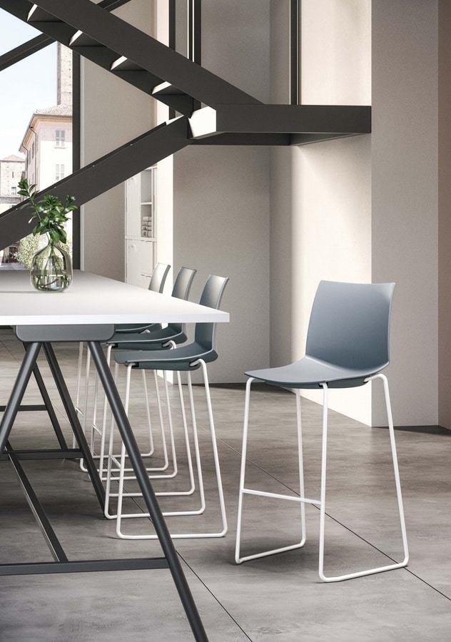 Taburete apilable de tecnopolímero o tapizado, disponible en dos alturas