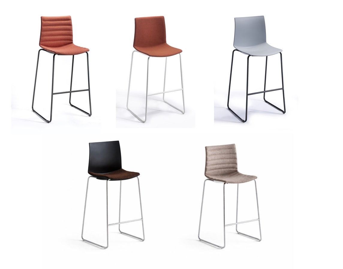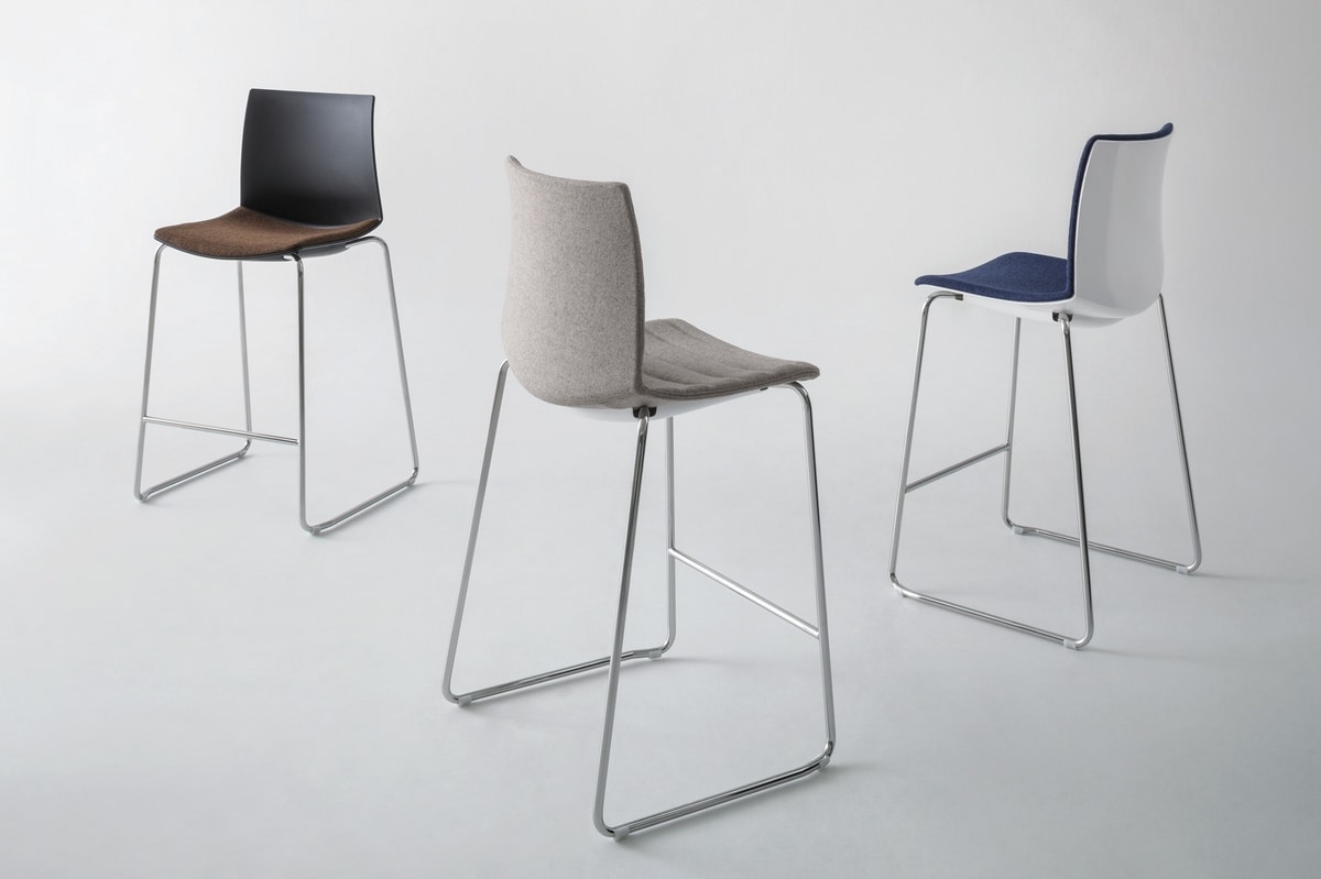 Diseńado con un respaldo excepcional y disponible en varias alturas, Kanvas Stool ofrece un movimiento de flexión suave y controlado que se adapta al cuerpo del usuario, proporcionando una comodidad notable incluso durante períodos prolongados. Su perfil moderno y fresco lo convierte en una opción atractiva para entornos comerciales, cafeterías y espacios recreativos. El tapizado frontal, disponible en múltiples combinaciones con grosores mínimos, y la versión completamente tapizada completan la oferta de un producto excepcionalmente versátil.