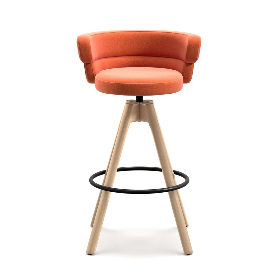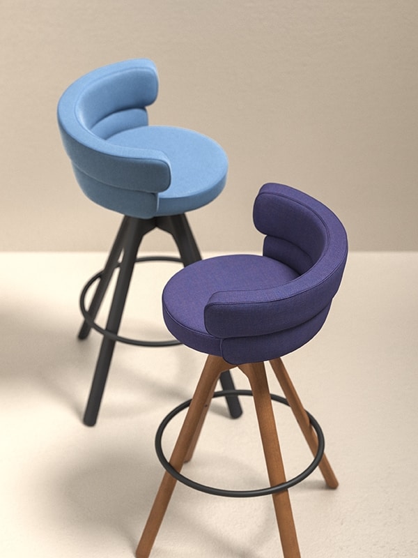 Solicitar precios Productos similaresTaburete giratorio con estructura de 4 patas de fresno macizo, asiento y respaldo de contrachapado de haya con espuma de poliuretano ignífuga, reposapiés de acero tapizado y pintado de negro.