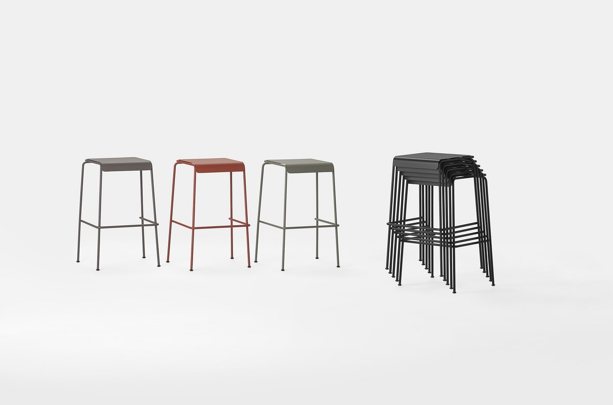 Taburete de metal apilable, con líneas geométricas limpias