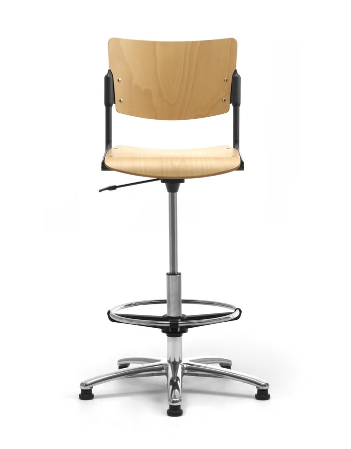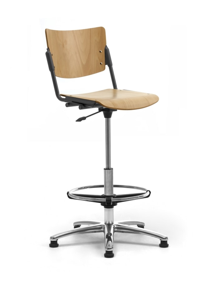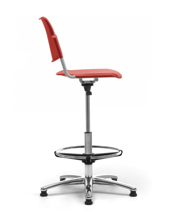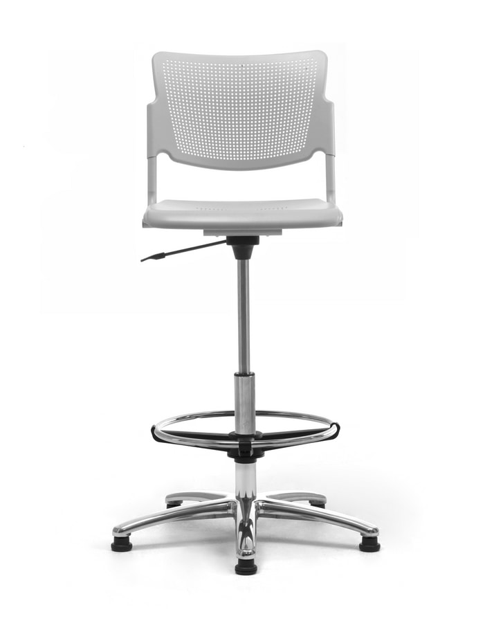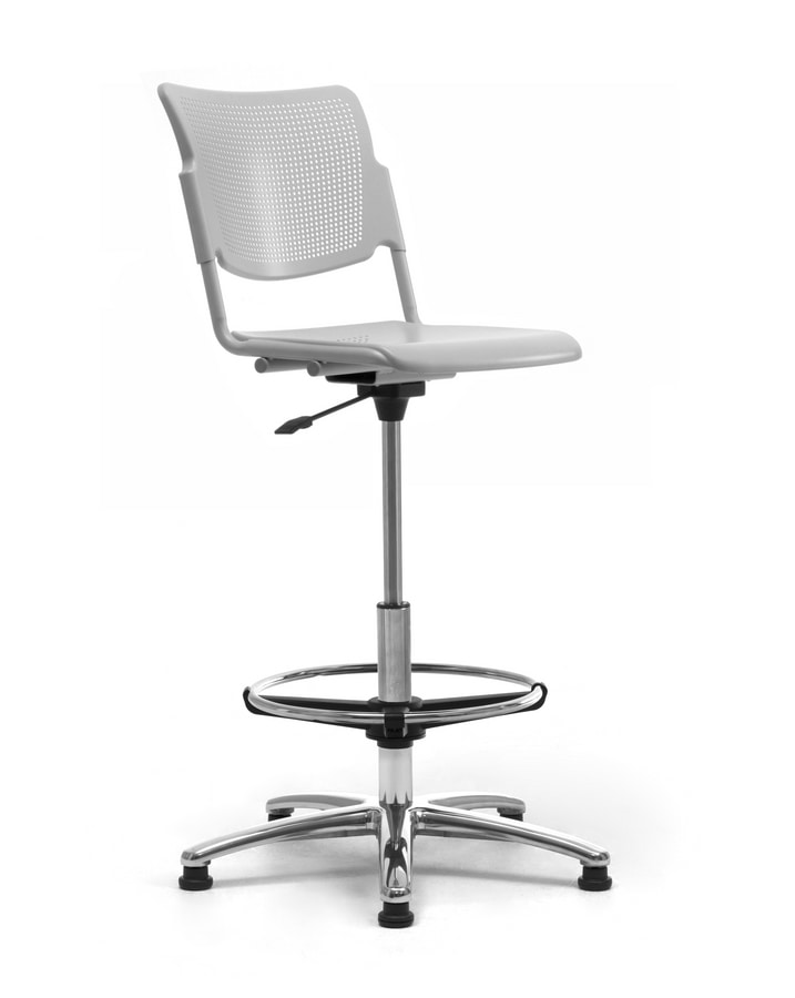 Disponible en chapa perforada de metal, polipropileno o madera, gracias a su fácil ajuste de altura, su cómodo reposapiés y su estable base de 5 radios, el Taburete LaMia es como un taburete de oficina, perfecto y fácil de colocar en un entorno productivo.?