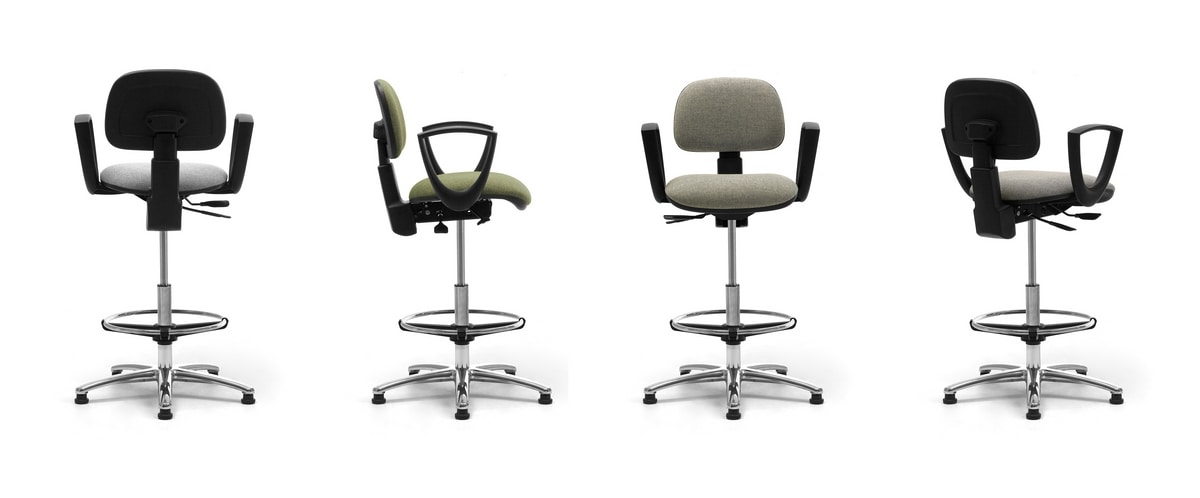 Taburetes operativos con asiento y respaldo tapizados