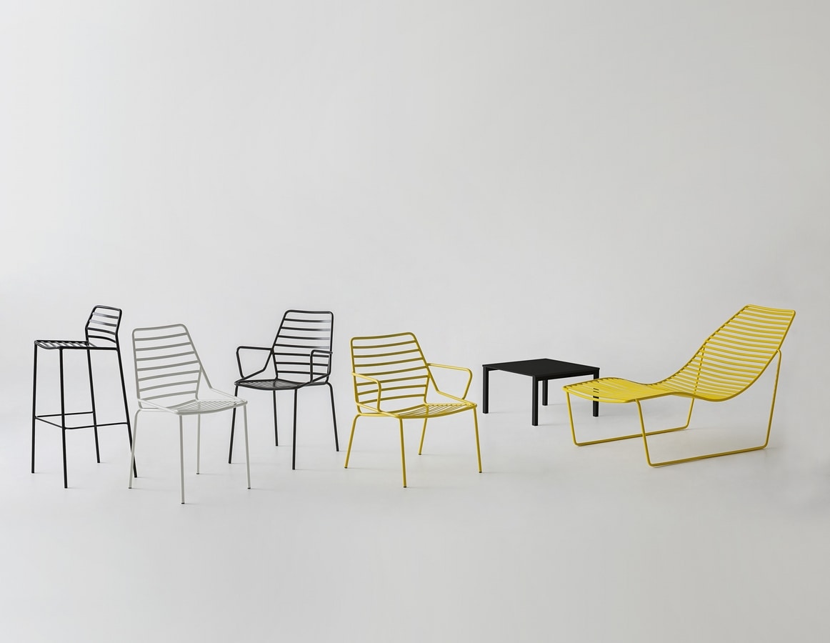 Link Lounge y Chaise Longue son síntesis de comodidad, estética, simplicidad y elegancia. Las intersecciones de la estructura en acero sólido son un elemento distintivo. Adecuadas para interiores y exteriores, el sillón y la tumbona son apilables para una mayor practicidad y disponibles en diferentes colores de moda.