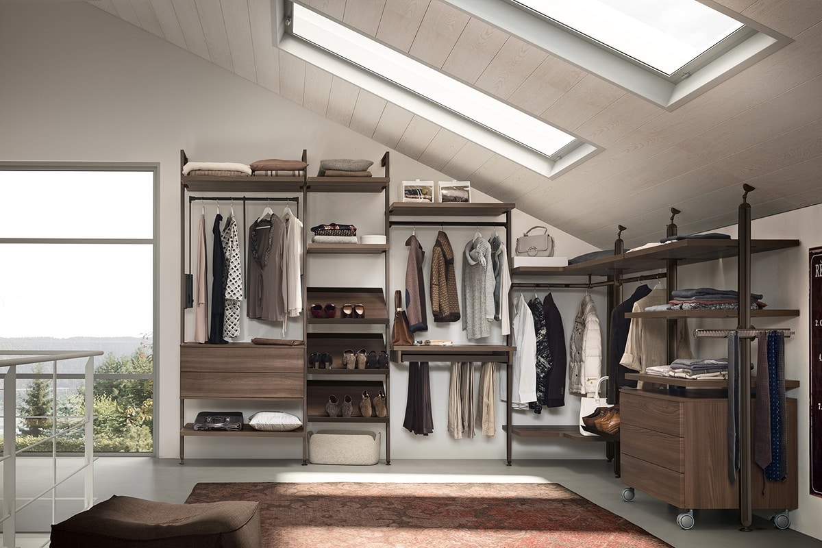 Vestidor ligero, con estructura de metal, cajones y estantes de madera. Modular según sus necesidades.