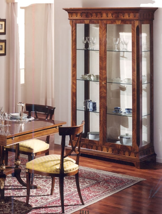 Escaparate con 2 puertas incrustadas. Estilo de lujo clásico. Acabado de color nogal.